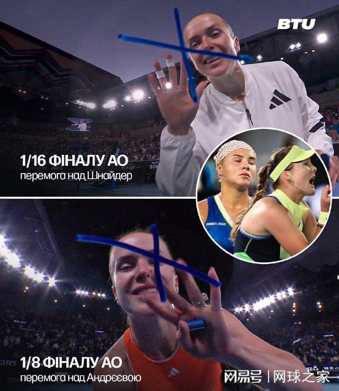 而获胜的斯维托丽娜则是连续两轮战胜俄罗斯球员(施耐德和小米拉)。除了不与对手合影之外,每次获胜后,小白菜都在镜头上画Х。有球迷搜索查询,发现这是呼应乌克兰文化中代表胜利的等臂十字,寓意盼望乌克兰在俄乌战争中取胜。