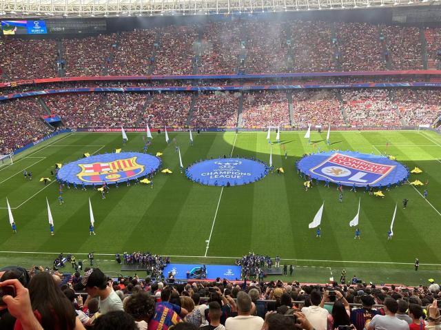当笔者走进圣马梅斯,更是被眼前的景象感到震撼,现场几乎成为了红蓝色海洋,用《每日体育报》巴萨女足跟队记者玛丽亚·蒂卡斯的评论说,这根本不是圣马梅斯球场,而是诺坎普,全场至少90%的座位被巴萨拥趸占据,当赛前报送里昂女足首发阵容的时候,嘘声几乎震耳欲聋。以往的决赛赛场两队球迷各占据一半看台的景象,本场压根就不存在,里昂球迷的白色只有几乎可以忽略的一小部分,正如在诺坎普球场仅有的一小片客场看台。